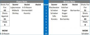 Unsurprisingly Chase Schaber was voted as the Man of the Match for Brasov with Anthon Eriksson picking up the Flyers award.