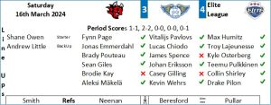 The Flyers travelled to Cardiff for the final meeting of the sides in the regular season… The visitors roster was unchanged from their midweek win in Nottingham with the addition of Fynn Page meaning Brodie Kay, James Spence, Dominik Salama and Casey Gilling were the scratches. For the Devils Tyler Busch and Chad Pietroniro were both missing from their line up along with Josh Waller who has a season ending injury.