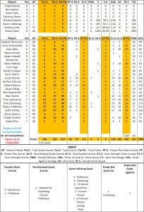 Most even strength goals and points went to Troy Lajeunesse with 23 plus 29