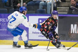 This was a game that meant nothing in terms of the Challenge Cup standings for either side as the Clan and the Flyers completed their sectional play in this season’s competition. The Clan who await the outcome of the third placed team to be determined in the other group were looking to make it back to back home wins on the weekend having taken league points the night before against the Belfast Giants. Missing for the Clan were Steven Seigo who suffered an injury the previous night and they started Lucas Brine in net rather than Landon Bow with recent signing Chris Martenet making his debut. The Flyers started Janis Voris in net with Shane Owen amongst the scratches along with James Spence, Austin Farley, Fynn Page and Ben Brown who was playing with his parent club the Dundee Rockets. Aiden Wilson was drafted onto the bench after permission was given by Romford for him to play this weekend.