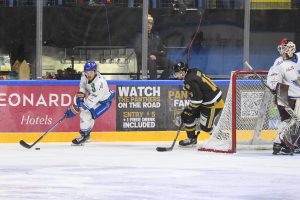 The Flyers completed their penalty kill to start the third. In the 43rd minute Stallard shot from the circles and Bednard made the save with his arm. A minute later Wilson was in good position but his first time shot in the slot was blocked by a Panthers leg. Krenželok ragged the puck in the Panthers zone and Bednard couldn’t hold his shot but the puck was cleared. Ollie Betteridge almost added to the home tally in the 46th minute when he was in front of the net and picked up a loose puck but his shot hit the outside of the post. The Flyers went on the power play in the 48th minute when Josh Tetlow was given an unsportsmanlike misconduct. Martineau forced a big pad save and Bednard then denied Chiodo with Kyte just flashing a shot past the post as the Panthers returned to full strength. Within a couple of minutes the home side scored twice with very similar shots beating Voris. Firstly Kontos from a Fossier set up went roof on the Fife keeper and Henbrant did likewise as he came in off the left wing and shot high over the blocker. In the 53rd minute a 3 on 2 break by the Flyers saw Martineau’s shot blocked and then Bednard stopped Cichy as he covered up the puck. Voris made another stellar save in the 54th minute on Nieminen but the puck was recycled and eventually landed at the stick of Betteridge who shot high into the net. A minute later and the Panthers missed the net on an odd man rush with just Voris to beat. The Panthers were on the power play again in the 56th minute when Martineau slashed the glove of Nielson. Kontos was looking for his hat trick and the Fife keeper denied him then Fossier as the Flyers completed another kill. In the final minute Chiodo and Cichy combined with the latter scooping the puck over the bar from close range as Bednard preserved his shutout.