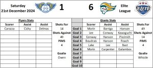 Following their meeting with the Flyers the weekend before Christmas the Giants then met the Clan in Glasgow on Boxing Day where they suffered their joint highest defeat on the season so far as the home side won 5-1. Two days later and the Giants reversed their fortunes on home ice with the Clan going down 4-1. The Dundee Stars provided the opponents in the final two games of 2024 and following a 5-2 win at the SEE the Giants made it back to back wins when they won 4-3 at Dundee Ice Arena on Hogmanay. It was to be a rocky start to 2025 for the Giants as they went down 5-3 on home ice to the Sheffield Steelers and then coughed up a point as they lost 3-2 in a shootout in the Midlands against the Coventry Blaze. The Nottingham Panthers visited Belfast for a two game weekend and were shutout 2-0 by the Giants in the first game who then followed up with a 4-2 win. The following weekend it was another home doubleheader for the Giants as they saw off the Steelers 4-2 and the Manchester Storm by the odd goal in five. A midweek visit to Surrey yielded two points in a 5-2 win against the Guildford Flames before a further four points were hoovered up last weekend with a shootout win at the SSE against the Coventry Blaze and a statement 4-1 win against the second placed Cardiff Devils in Wales. The Giants head to Tayside to play the Dundee Stars following their meeting with the Flyers.