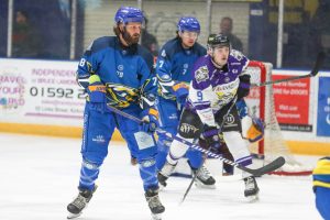 The Flyers had the first shot of the match in the opening minute as Daniel Krenželok tested David Tendeck’s glove. Jānis Voris was in the game in the 3rd minute when he made a fine pad save on a spinorama effort from Loren Ulett. A minute later and the Flyers were on the first power play of the game as CJ Garcia was binned for tripping Phélix Martineau. The visitors however almost scored short handed with two chances falling to Stephen Johnson who forced a save on his first effort from Voris and then failed to control the puck in a wide open position in front of the Fife net. The Flyers managed to complete the kill after Voris made another fine reaction save from a Cam Critchlow effort at the edge of his crease. Johnson had another chance to open the scoring when he snuck in behind the Flyers defence in the 7th minute but Voris shut the five hole on him to keep him out. Massimo Carozza snapped a shot from the circles on goal in the 8th minute that Tendeck gloved then a minute later Lucas Chiodo was also denied by the right handed catching keeper as Tendeck once again flashed the leather. A quick up pass by Brodie Kay in the 10th minute sprang Charles-Antoine Paiement through centre ice and 1 on 1 with Tendeck the visiting goalie made a huge stick save. Tyler Hinam in the 11th minute was stopped by Voris but the visitors took the lead in the 14th minute when Craig Martin from behind the goal line found Alexis D’Aoust who fired the puck from the bottom of the circles top shelf on Voris. The Flyers survived a scramble around their net in the 16th minute when Voris stopped Gianluca Esteves and Critchlow with a snow angel on the goal line. The Flyers were level moments later when Carozza fed the puck to Martineau who went in on goal and slipped the puck between the legs of Tendeck. Another sprawling save in the 18th minute from Voris kept Johnson out on the goal line. The Flyers ended the period on the power play as Ryan Hughes was called for tripping. Hinam had an early shorthanded bid stopped by Voris but the Flyers came up with a buzzer beater as Austine Farley was positioned at the side of the net to pick up a loose puck and fire high into the net as the clock expired. The play was reviewed and the goal given with just one second remaining.
