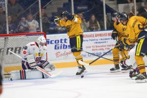 The Flyers took the game to the Stars in the opening minutes of the second period and Winquist and Johan Porsberger both tested Fiske. The Stars went on their first powerplay in the 23rd minute with Jameson getting the gate for tripping but the Flyers produced a strong kill to return to full strength without giving up a shot on Purboo. Jackson Desouza was next in the box on a hooking call but the Flyers couldn’t get anything set up and as the penalty was winding down Emmerdahl was called for interference. With Stars returning to full strength and on the power play Ian Scheid took the puck coast to coast with a shorthanded bid with Fiske having to make a save before Purboo came up with a big pad save to deny Bradley Schoonbaert as the Flyers completed the kill. The Flyers were in penalty trouble as both Winquist and Garet Hunt were called 20 seconds apart for slashing infractions. The Stars with a long two man advantage found Purboo in fine form as he made a handful of fine stops and as Hunt stepped back on the ice at even strength he had a breakaway on Fiske but the puck bobbled as he got his shot away that sailed over the bar. The final save of the period came from Purboo who got the cuff of his glove on a McBean shot.