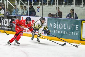 The Flyers got the perfect start to the second period as Alderson took the puck to the net and the kick out by Fiske landed at the stick of Winquist who made no mistake from the slot. In the 23rd minute Jameson took the puck to the slot and just fired high on the top corner. The Stars almost levelled matters in the 24th minute when Matt Berry saw his wraparound effort slip clean through the crease and out the other side. A minute later and Owen absolutely stoned Otto Nieminen who was all alone in from of the Fife goal as Spencer Naas won a race for the puck and found him but Owen flashed the leather to deny him. The Stars went back on the powerplay as Jonas Emmerdahl was adjudged to have hooked Jackson Desouza. It was another excellent kill by the Flyers as Dow came closest forcing a kick save by Owen and the defence helped him out with a clearance. Owen made a left pad save on Kameron Kielly in the 29th minute . The Flyers doubled their advantage at 31:24 when Winquist got a tip on the puck to force a save by Fiske but Ethan Somoza on the follow up picked the top corner. In the 34th minute the Stars had a 3 on 2 as Owen stopped both Boudens and Naas. A scrum around the Flyers net in the 38th minute resulted in offsetting minors for both Winquist and Bradley Schoonbaert. The visitors survived a couple of hairy moments in the closing minutes around their crease as the puck just wouldn’t fall for a Stars stick.
