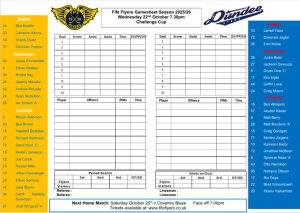 Click the image below for your downloadable gamesheet for Wednesday’s game against Dundee Stars