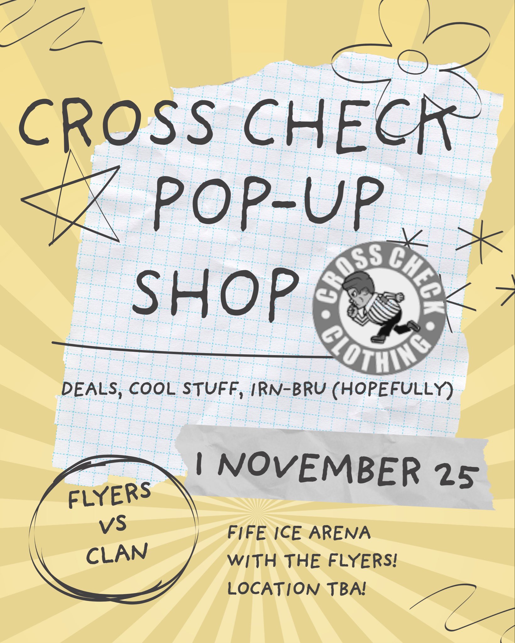 Our good friends from Cross Check Clothing are here in Kirkcaldy for tonight’s game with a pop-up shop, selling the latest hockey threads and showcasing their excellent range.