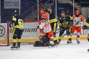 The Flyers completed their only three games in three night schedule this season with the visit of the Sheffield Steelers who would go back to the top of the standings with a win. The home side were along the same lines as the night before with Jonas Emmerdahl and Justin Ducharme missing but Shane Owen returned to the Flyers net as starter. The Steelers started Eamon McAdam in net and scratched Mikko Juusola.