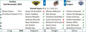 The game was decided with the only shot on goal in overtime as the Steelers regained possession of the puck after a no call in the neutral zone and Mitchell Balmas was able to find the corner of the net on Owen’s stick side from the slot.