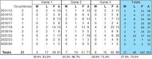 The game completed the Flyers only 3 in 3 nights schedule this season, the 21st time in their EIHL era they have had such a schedule with the results summarised below: