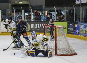 The Flyers followed up an emotional defeat against the Devils the night before with the chance reduce the considerable deficit on the Blaze who along with Glasgow are the two teams in their sights to overtake to secure a playoff place. Mat Robson was the Blaze starter in net who were without Archie Hazeldine, Alessio Luciani and Ivan Chukarov. The Flyers made one change from the previous night with Simon Despres coming back onto the blueline and Jonas Emmerdahl dropping out. Christian Purboo, Mason Alderson were also scratched and Garet Hunt served his final game of suspension.