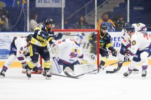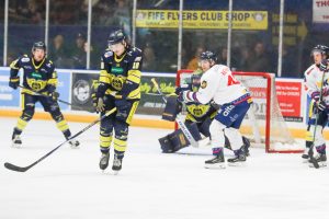 The Flyers welcomed local rivals Dundee Stars for their final home game of the season. Both teams were simply playing for bragging rights and the visitors started Emil Kruse in net and were without Kameron Kielly. The home side were along similar lines to previous weeks missing the injured trio of Johan Porsberger, Mason Alderson and Rowan Mills with Milan Lucic also a scratch. Shane Owen made the start in net for the Flyers.